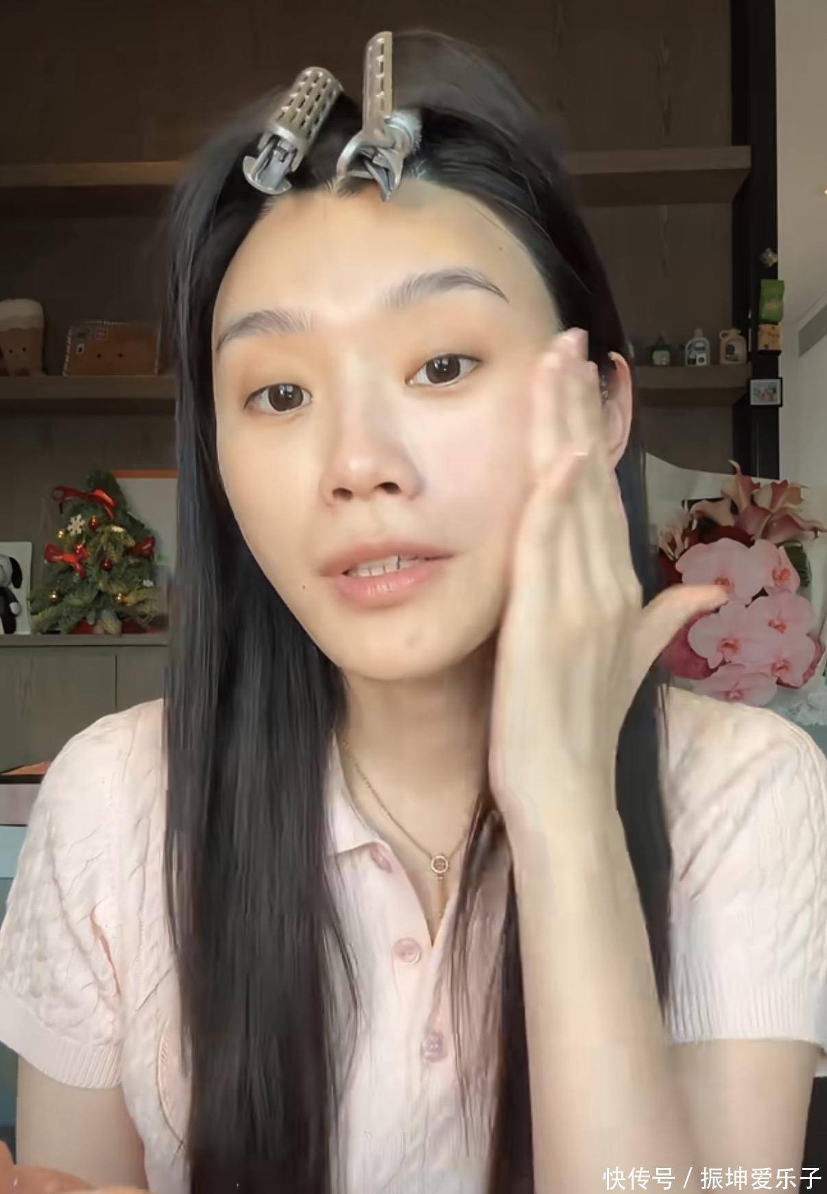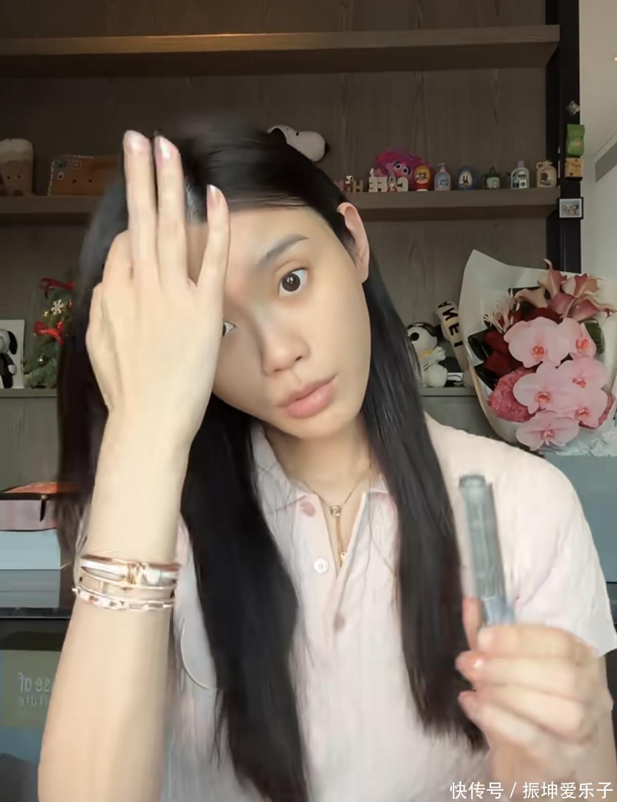 为了搞定那个让人羡慕的高颅顶,她直接上了个神器夹发根,完事儿头发瞬间蓬松,五官立马立体不少,这招对于头发软塌的朋友太实用了,真心被种草!上妆手法也随性,直接用手抹粉底,说是更服帖还不吃粉。虽然家里 YSL 礼盒堆成山,旧没用完又买新,但她也就随手展示下,转头还是老老实实拿遮瑕膏去盖痘印和暗沉。眼妆倒是很有超模范儿,粉色打底加深眼尾,弄出点小烟熏的欧美高级感,整个人气色一下子饱满起来,神采奕奕的。